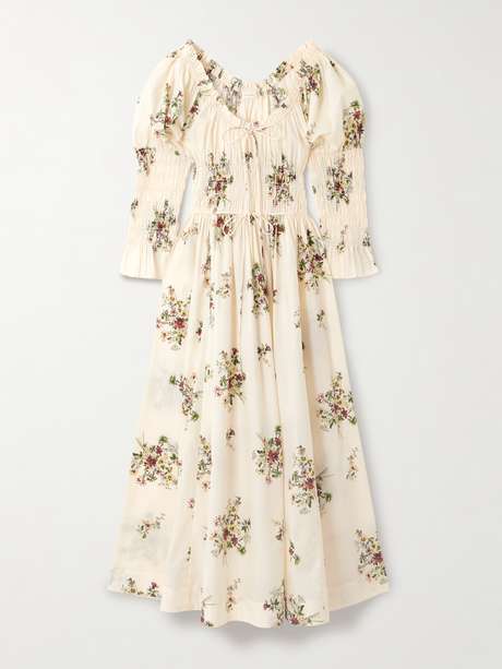 DÔEN's collections are always so joyful and uplifting. Made from organic cotton-poplin, this 'Kaira' dress is printed with floral bouquets and shirred to accentuate the shape. Use the dainty ties to adjust the ruffled scoop neckline or leave them loose to create a dreamy off-the-shoulder silhouette.