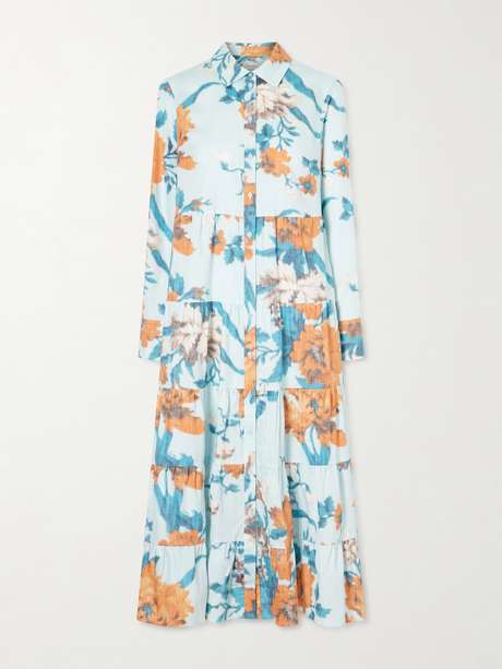 Softly structured and feminine, this midi dress reflects Erdem’s affinity for romantic florals. It’s crafted from cotton with a tiered silhouette that adds gentle volume, allowing the print to move beautifully with each step.