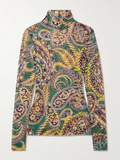 Etro's top is patterned with colorful paisley swirls that'll lift any outfit. It's cut from mesh for a second-skin fit and has a chic turtleneck. Underpin yours with a bralette to temper the sheerness.