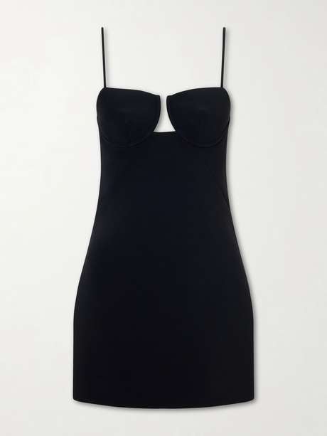A study in Parisian precision, Givenchy approaches design through sharp tailoring and refined minimalism. This mini dress is cut from structured crepe in a clean, body-skimming silhouette with delicate straps and a sculpted bodice; style it with pared-back accessories.