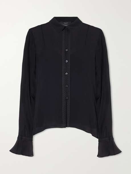 GUCCI Lace-trimmed silk-crepe shirt
