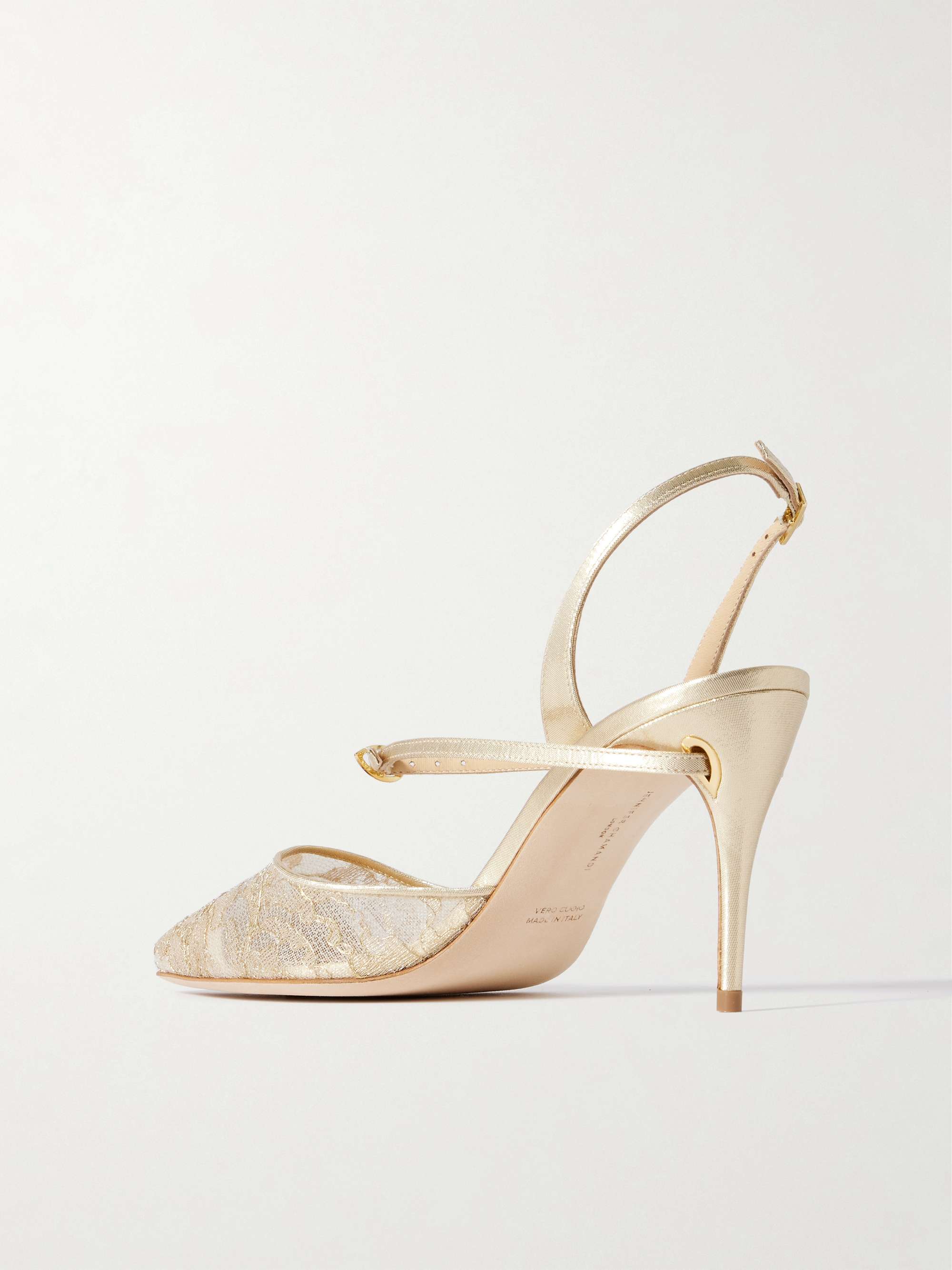 JENNIFER CHAMANDI Vittorio 85 lamé-trimmed metallic lace slingback pumps