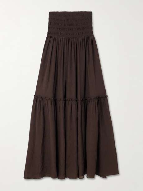 JOSEPH Folia shirred tiered seersucker maxi skirt
