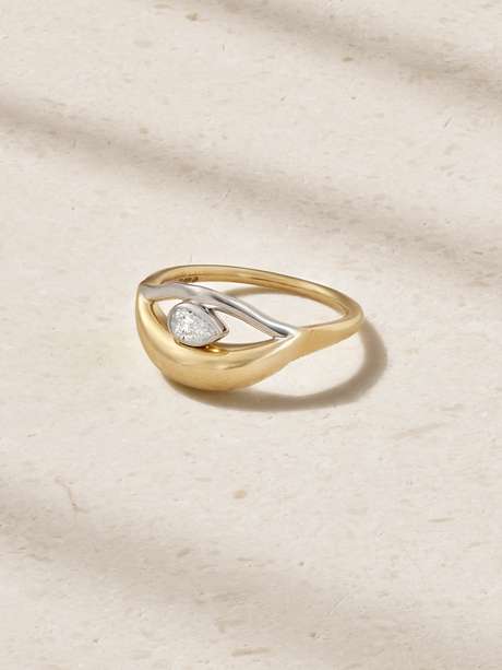 Timeless, delicate, L'Atelier Nawbar's 'Salvatore' ring is the perfect kind for stacking. It's made from 18-karat gold that shimmers with a diamond at its crown.