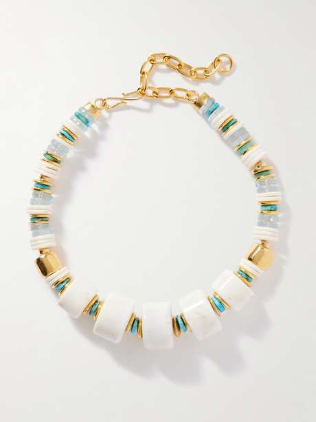 LIZZIE FORTUNATO Granada gold-plated, bone and turquoise beaded necklace