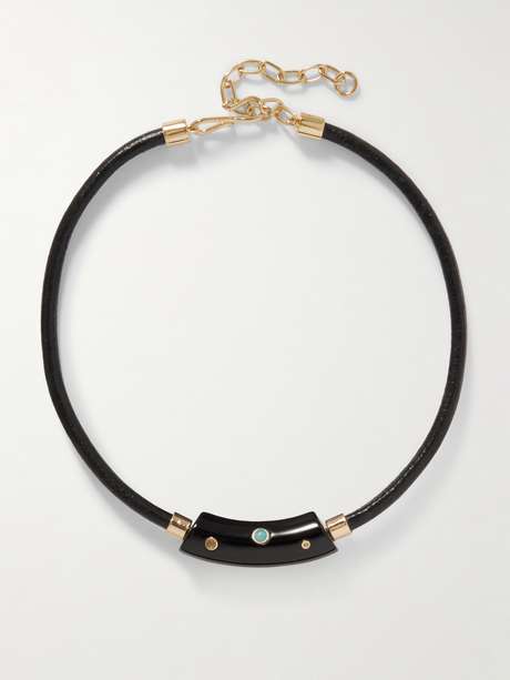 Lizzie Fortunato's jewelry is designed to be displayed when it's not worn - the brand refers to its pieces as "art objects." Handmade from gold-plated metal, this 'Cabrera' choker has a leather cord and an arc-shaped resin bead set with topaz, amethyst and amazonite.