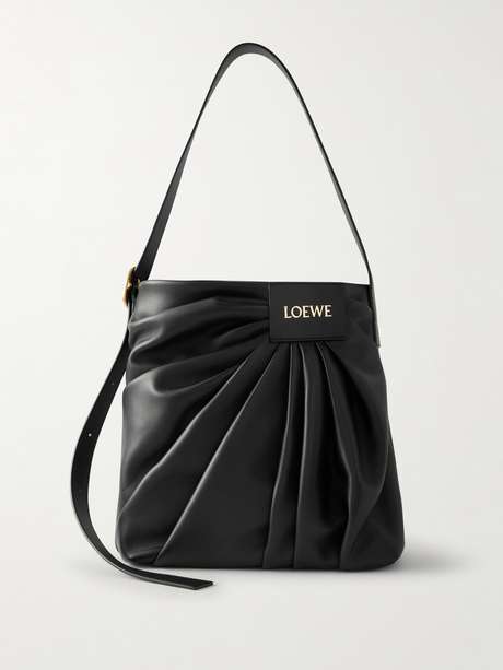 Loewe's bag is crafted from leather that's artfully gathered along the front, highlighting the gold-foiled logo patch. It has a belt-inspired buckled strap you can adjust to your preferred drop and offers enough space inside for your tablet, phone and wallet.
