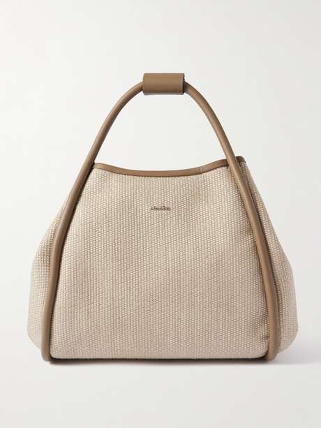 MAX MARA Marine leather-trimmed faux raffia tote