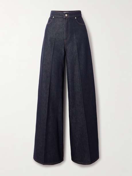 Max Mara's 'Carmine' jeans have a high-rise, wide-leg profile that's effortlessly cool. They've been made in Italy from inky denim with contrasting topstitching and pressed creases that add definition. Show off the 'MM' embroidery on the back pockets with a tucked-in tank or cropped top.