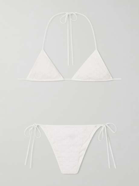 Missoni Mare's swimwear is always two things: colorful and timeless. This string bikini is made from soft stretch fabric crocheted with metallic fibers that subtly catch the light. Both the top and briefs fasten with adjustable ties.