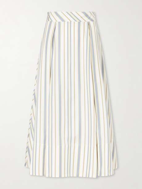 THIERRY COLSON Wynona pleated striped cotton-gabardine midi skirt