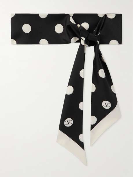 Valentino Garavani's 'Plusdepois' scarf is patterned with classic polka-dots – look closely and you'll spot the house's 'VLogo' motif incorporated into the print. It's made from silk-twill and has a slim shape. Tie yours at the neck or onto a bag handle.
