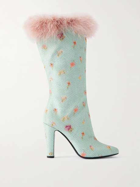 Valentino Garavani's 'Hotty' knee boots are made from crepe and printed with tiny flowers and polka-dots. They're lined in leather to keep the structured shape and have fluffy feather-trimmed cuffs.
