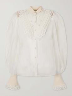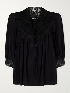 CHLOÉLace-trimmed organic silk crepe de chine blouse