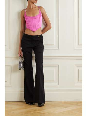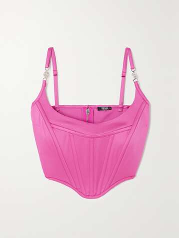 Icons cropped embellished satin bustier top
