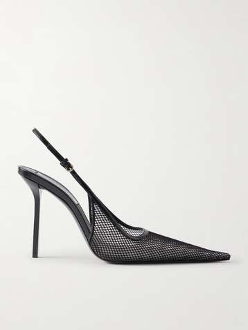 Victoria leather-trimmed mesh slingback pumps