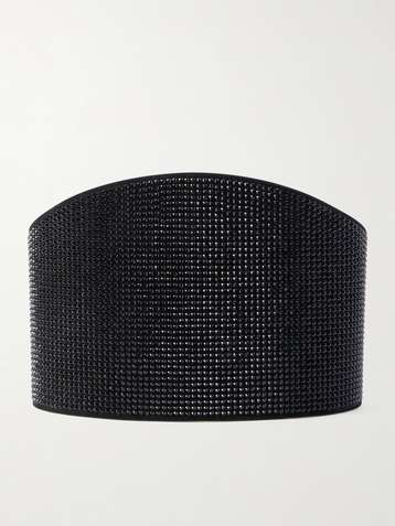 Undone crystal-embellished suede waist belt