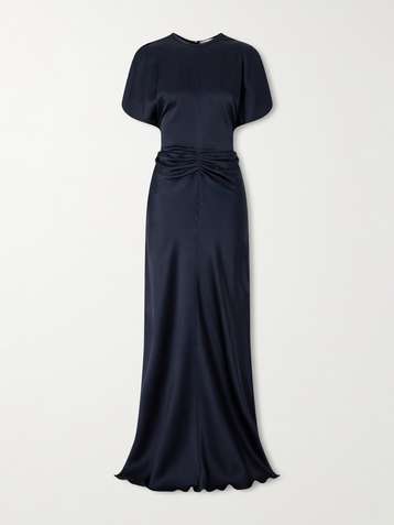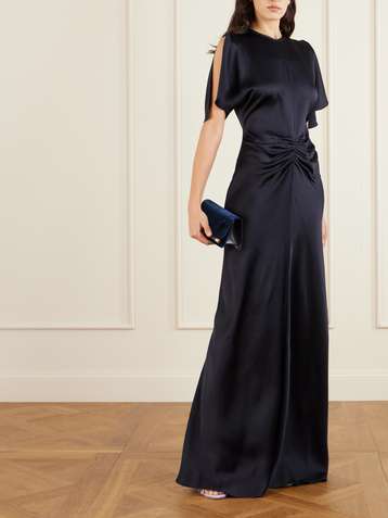Gathered satin maxi dress