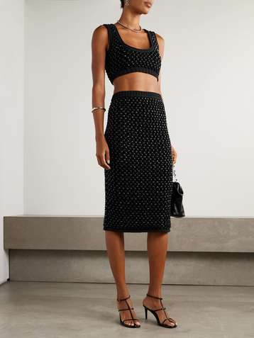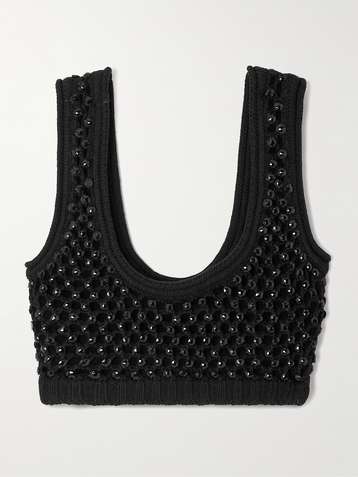 Lady cropped crystal-embellished crocheted cotton-blend top