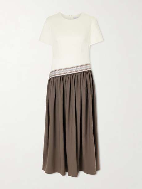 ABADIA Sadu asymmetric grosgrain-trimmed cotton-jersey and twill maxi dress