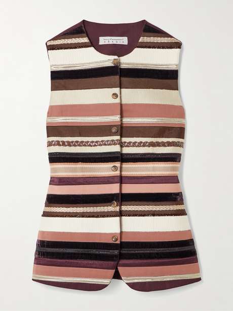 Abadia's waistcoat showcases the brand's signature Sadu embroidery, which draws on traditional Arabic techniques. It's tailored from wool-blend with colorful, textured stripes and sparkling bead embellishments. Wear yours with a pair of tailored black pants.