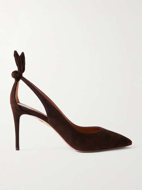 Aquazzura's pumps are beloved for their timelessly elegant silhouette. Made in Italy from supple suede, they have pointed toes and are detailed with bows at the back - the distinctive cutouts leave a glimpse of skin on show.