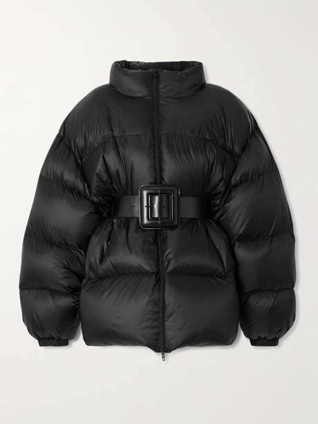 Balenciaga's jacket cinches with a wide leather belt to create the label's signature hourglass silhouette. Worn on the Winter '25 runway, it's made from shell that's quilted and filled with insulating down and has a high funnel neck. Slip your hands into the deep side pockets.