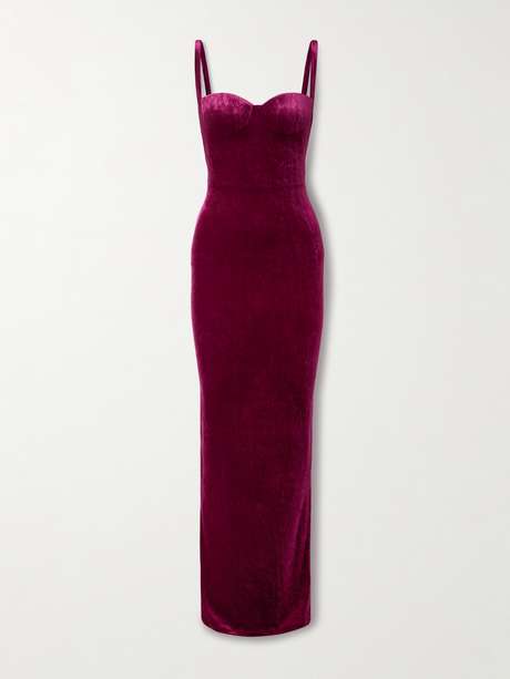 Balenciaga's gown is made from smooth velvet in a beautiful magenta shade, ensuring you'll leave a lasting impression at your next event. It's cut for a close fit with a corset-inspired bodice featuring supportive internal boning and has a column skirt that gently skim the floor as you walk.