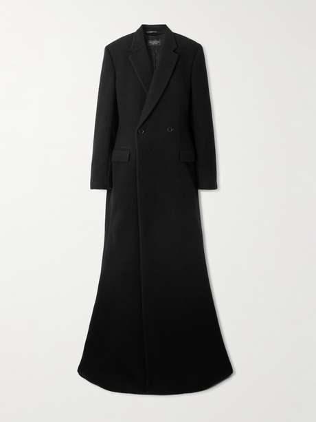 Balenciaga takes the classic pea coat to new lengths - literally. Featured on the Fall '25 runway, this version is tailored from brushed wool-blend and has a double-breasted front with notched lapels and a floor-sweeping hem. The smooth lining ensures effortless layering.