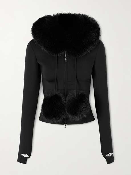 BALENCIAGA Embroidered plush-trimmed jersey hoodie