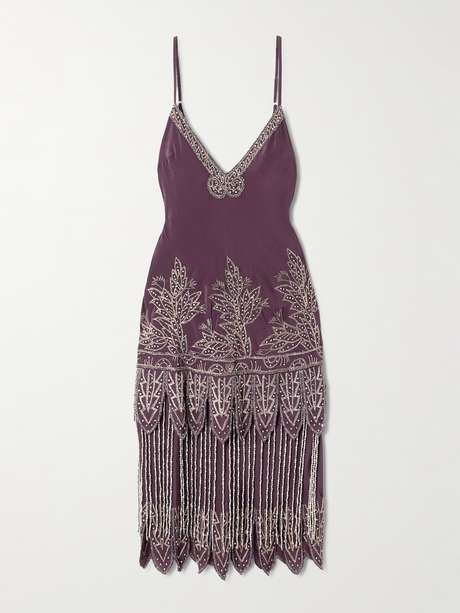 BODE's dress is inspired by the Belle Epoque, specifically the cabaret dance scene in Montparnasse and the Latin Quarters of Paris. Made from silk-crepe, it's artfully embroidered and scattered with illuminating crystals and finished with swishy fringing.