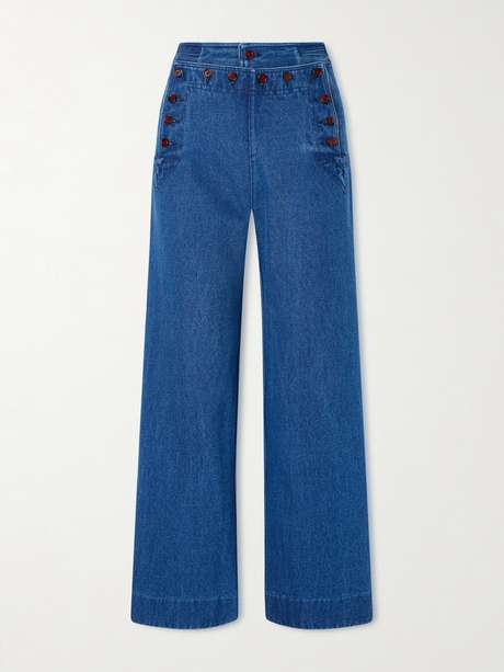 BODE's jeans reference traditional sailor uniforms – they button in just the same way. Made from denim, they have a wide-leg shape and a high-rise waist.
