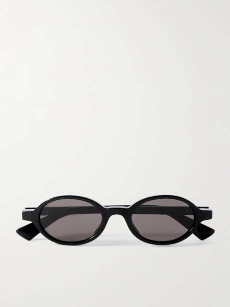 Bottega Veneta Eyewear's sunglasses have sleek oval frames reminiscent of styles from the '90s and '00s. They've been made in Japan from glossy black acetate with smoky lenses and slim arms.