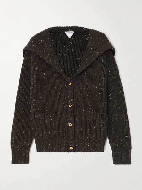 Bottega Veneta's cardigan has been knitted in Italy from certified wool-blend that's flecked with contrasting threads. It has a generous sailor-inspired collar and handy patch pockets. Match your jewelry to the gold-tone 'Knot' buttons.