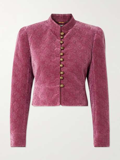 Chloé's jacket is embroidered with ornate florals that call to mind Baroque tapestries. It’s made from plush cotton-velvet and has a cropped fit and engraved gold-tone buttons.