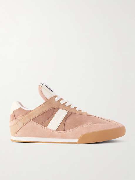 CHLOÉ Kick paneled leather-trimmed suede sneakers