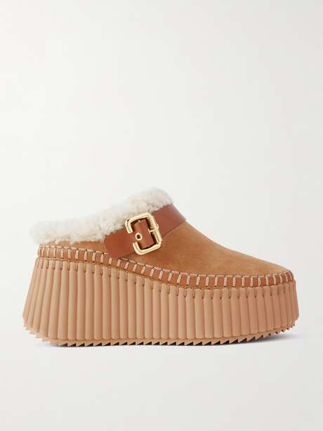 Chloé's suede mules are set on the brand's signature 'Nama' platform soles. They have a cozy shearling lining and a leather strap that fastens with the house's 'C'-shaped 'Paddington' buckle. The hand-stitched edges take almost five hours to complete.