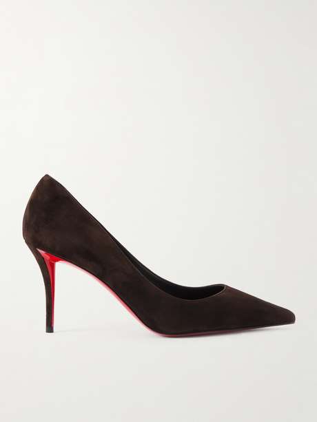 Christian Louboutin's 'Miss Z' pumps are detailed with the label's 'Everlasting Red' soles, which are engineered with an innovative coating technique to ensure durability. They've been made in Italy from velvety suede and have sharp pointed toes and 80mm stiletto heels.