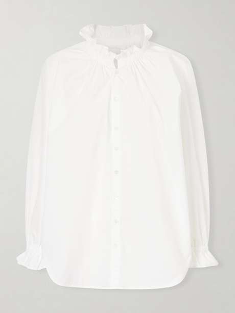 Citizens of Humanity’s 'Loretta' shirt is cut from lightweight cotton poplin with a loose fit, raglan sleeves, and curved hems. It's detailed with a romantic ruffled collar and cuffs.