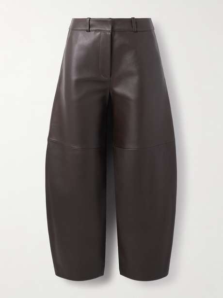 CO's pants are tailored from panels of leather in a curved, barrel-leg shape that feels distinctly modern. They have a darted waist and minimal details. Balance the voluminous proportions with a slim top or sweater.