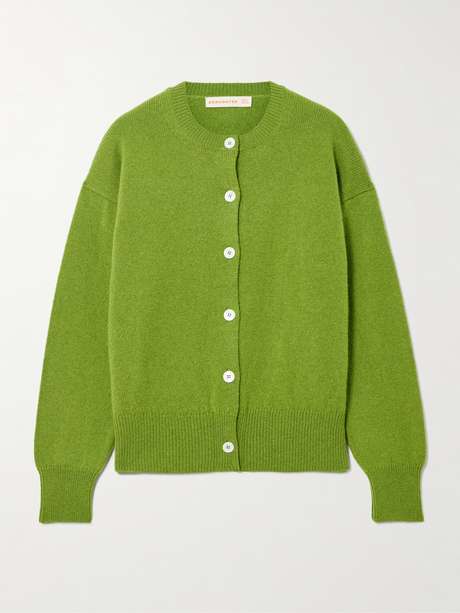 &Daughter's crew neck cardigan offers a chic take on styles synonymous with golfing greens and the club house. It's made using the traditional knitting process of 'fully fashioning' - each component is created separately, then linked together by hand. Mother-of-pearl buttons add a considered finishing touch.