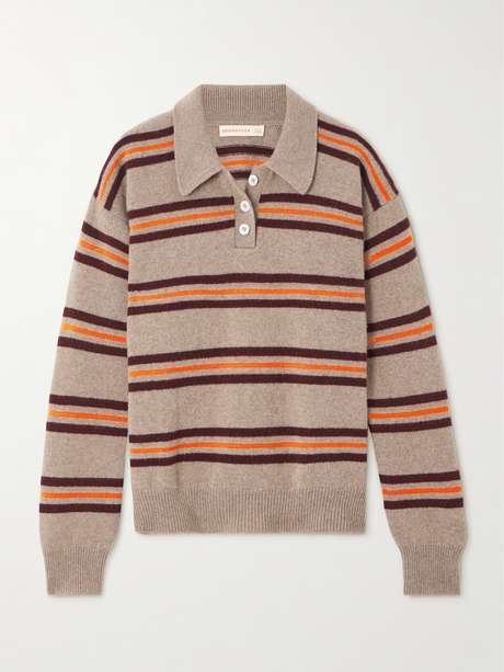 &Daughter's 'Edith' sweater has been handmade from locally sourced Scottish wool. Inspired by vintage sports styles, it's patterned with stripes and has a contrasting pointed polo collar and chunky ribbed trims. Wear yours half-tucked into jeans or tonal tailoring.