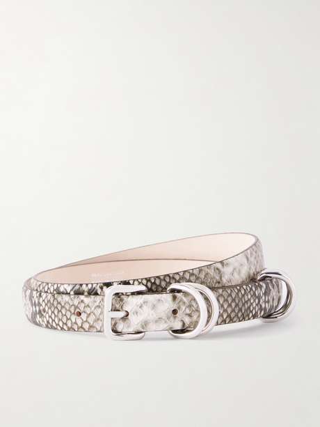 The narrow profile of Déhanche's 'Constance' belt makes it perfect for cinching the waist of blazers or high-rise pants. It's handmade from supple leather in a snake-effect and has silver rings as keepers.