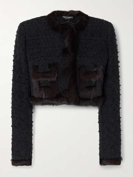 Dolce&Gabbana's Fall '25 collection calls to mind the effortless yet alluring style of models off-duty. Debuted on the runway, this cropped jacket is made from cotton-blend tweed with glamorous shearling trims.
