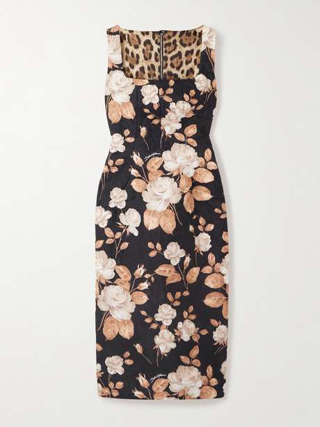 Vintage florals lend a sense of romance to Dolce&Gabbana's dress. Made from cotton-blend jacquard, it fits close through the darted bodice and has a chic column skirt. The bold leopard-print lining is a house signature.