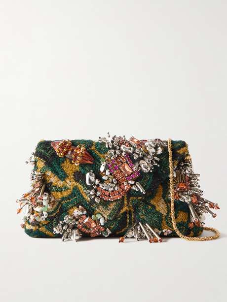 Dries Van Noten Creative Director Julian Klausner shares the same love for texture and print as the label's founder - and displays it just as beautifully in each design. This clutch is made from colorful jacquard inspired by tapestry and covered with an array of crystals and beads. It's sized to hold your phone, keys and lipstick and comes with a detachable shoulder strap so you can go hands-free.