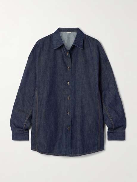 Dries Van Noten's shirt is made from denim that's indigo-dyed and stonewashed for a natural fade. It's cut for a loose fit with curved dolman sleeves and finished with camel topstitching.