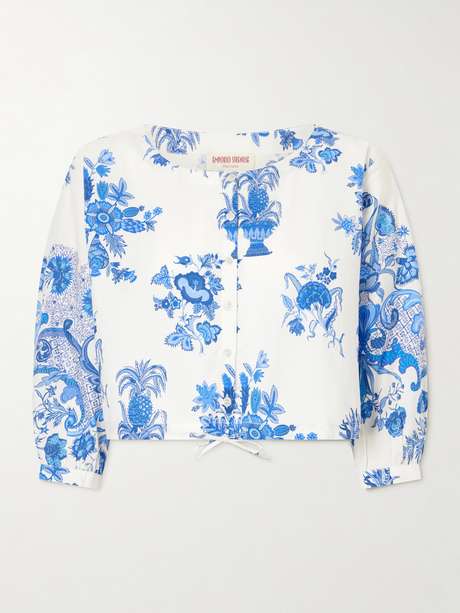 Emporio Sirenuse’s signature prints make styles like the 'New Jinny Chintz' blouse feel especially distinctive. Cut from cotton-poplin, it features a botanical blue motif and a drawstring hem to adjust the fit. Pair it with the matching bottoms and sandals for a fresh, summery look.