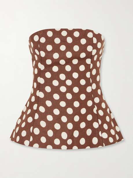 FAITHFULL Petro strapless polka-dot linen top