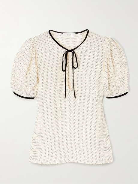 FRAME's blouse works for the office and the weekend. Made from lightweight silk-chiffon, it's scattered with timeless polka-dots and is edged with soft velvet trims. The keyhole neckline can be secured in a dainty bow.
